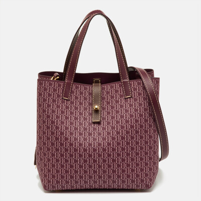 The Matryoshka Locked XS bag from CH Carolina Herrera is a study in structured elegance. Rendered in burgundy monogram coated canvas with smooth leather trim, it features a refined locked closure and compact proportions — perfect for polished daywear.