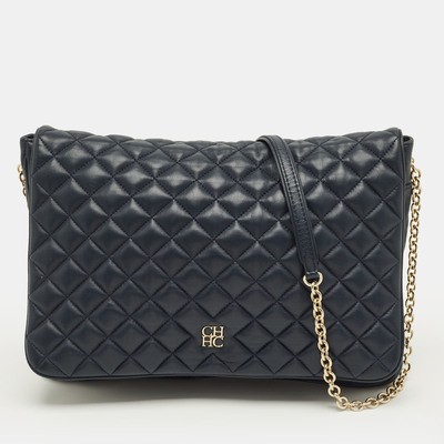 This CH Carolina Herrera shoulder bag comes in black quilted leather with a timeless feel. The gold logo gleams against the front flap, subtly catching light. Finished with a chainlink shoulder strap, it’s a luxurious companion for both everyday wear and evening plans.