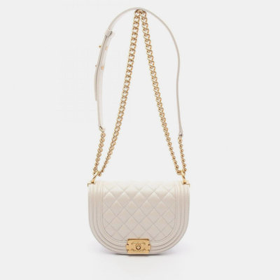 A modern classic in luminous white, the Chanel Boy Small Shoulder Bag redefines elegance with edge. The textured caviar leather lends depth and resilience, while its clean lines and signature silhouette embody the essence of contemporary Chanel — bold, refined, and enduringly chic.
