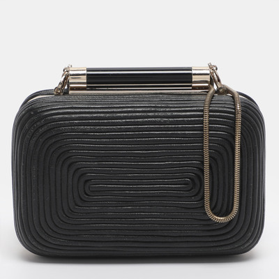 A chic finishing touch for evening looks, this black minaudière clutch is defined by its sleek structure and polished hardware. The compact design fits just the essentials, making it ideal for special occasions. It captures timeless sophistication with a contemporary edge.