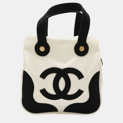 Chanel Coco Mark Marshmallow Bag Tote Handbag Canvas Ivory White Black 1248631 (чёрный, lpn31125814)