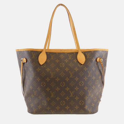 The Louis Vuitton Neverfull MM is a spacious tote in iconic monogram canvas with natural cowhide trim and a striped textile interior. Perfectly sized for work, travel, or everyday essentials.