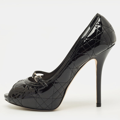 Dior Size 38.5 Black Quilted Cannage Patent Leather Peep Toe Pumps 1249811 (чёрный, lpn31126695)