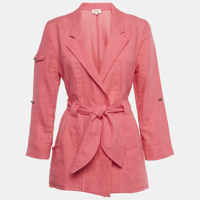 A lightweight pink linen blazer from Kenzo, complete with a waist belt for definition. It wears well over tanks, tees, or dresses, bringing color and ease to everyday layering.