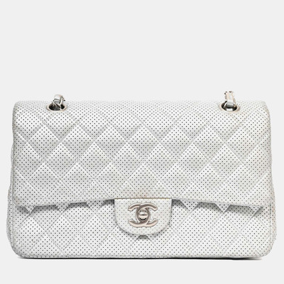 Chanel 2014 Silver Perforated Leather Medium Double Flap Shoulder Bag 1247720 (lpn31127043)