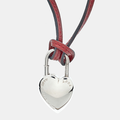 This Hermès necklace features a heart pendant suspended from a leather cord and finished with silver tone accents. Its clean design and symbolic motif make it a charming accessory for everyday wear. A piece that reflects the house’s balance of simplicity and sentiment.