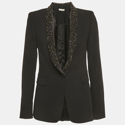Alice + Olivia Black Beaded Collar Crepe Blazer M 1252125 (чёрный, lpn31130668)