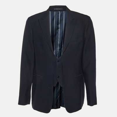 This Emporio Armani mens blazer reworks tailoring with a vest style front and dotted wool fabric. Understated yet distinct, its a great pick for layered styling.
