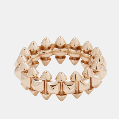 Bold, architectural, and irresistibly modern, the Cartier Clash de Cartier Band Ring celebrates the duality at the heart of contemporary elegance. Crafted in 18K rose gold, its sculptural design juxtaposes soft curves with sharp, geometric studs—an audacious reinterpretation of classic refinement.