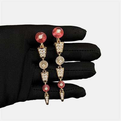 Bvlgari Bulgari Serpenti Viper Earrings Rose Gold Tourmaline Moonstone Diamond 1249082 (lpn31130986)