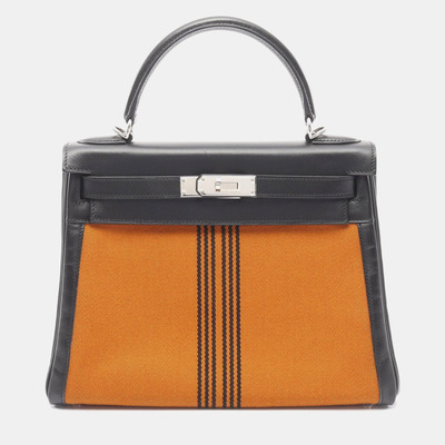 Rendered in Hermès’ legendary box calf leather—a material celebrated for its satin smooth finish and lasting character—this piece is contrasted with the organic texture of toile, adding depth and nuance to its design. The interplay of black and orange tones evokes the brand’s heritage palette, while the meticulous craftsmanship ensures every edge and contour feels sculpted with intention.