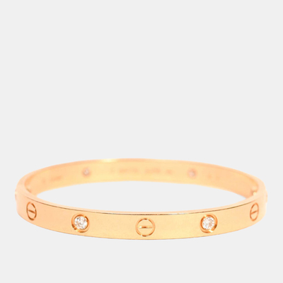 Cartier’s 18K yellow gold Love bracelet features four sparkling diamonds, each set with care to highlight the bracelet’s clean, structured design. A timeless symbol of commitment and craftsmanship, this size 17 model comes with its signature screw motif and secure closure.