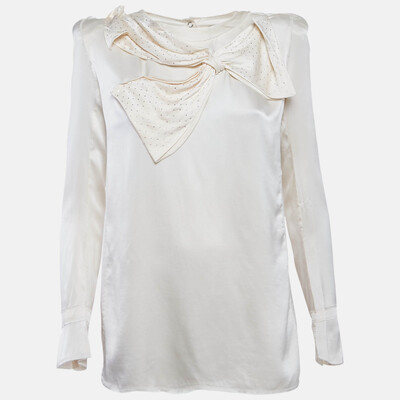 Soft satin gives this Balmain blouse a smooth, light drape, while the oversized bow brings a bit of personality to the neckline. The raw edges add a slightly undone touch that keeps the look from feeling too polished. Long sleeves and a simple silhouette make it easy to pair with both tailored and relaxed pieces.