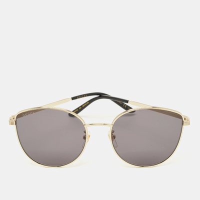 These Gucci sunglasses use a cat eye shape paired with a light gold tone frame that feels clean and understated. The darker lenses balance the brightness of the metal, giving you a neat, polished look that works well in everyday sunlight.