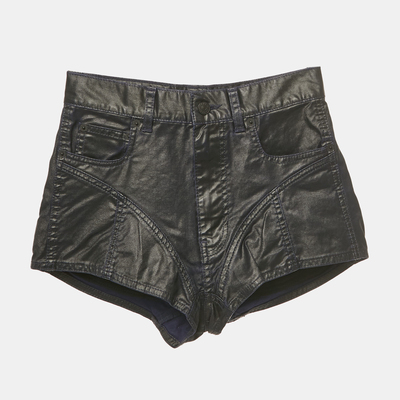 These Mugler shorts are made from navy nylon with a smooth, lightweight feel. The fitted waist and short length give them a sharp, athletic outline, while the subtle paneling adds shape.