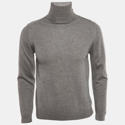 The grey wool has a soft, lived in look that suits this Lanvin mock neck sweater. The knit feels warm and easy to wear, and the higher neckline adds a bit of coverage without feeling formal. It’s the kind of sweater you pull on for everyday moments, simple and comfortable with anything you pair it with.