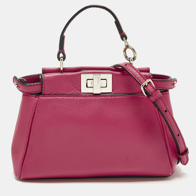 A tiny burst of joy, the Micro Peekaboo brings Fendi’s signature structure into an easy, day to night size. Crafted in vivid fuchsia leather, it has the same iconic top handle shape you know, just scaled down to hold the essentials—cards, a lip tint, maybe even your earbuds. The detachable crossbody strap lets you choose between hands free errands or carrying it as a charming mini top handle.