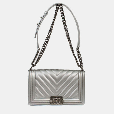 Boy Chanel Silver Calfskin Chevron Medium Shoulder Bag 1251088 (lpn31132439)