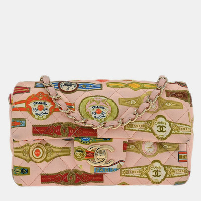 This playful Chanel shoulder bag features pink satin printed with the colorful “Cuba Cigare” motif from the Cruise collection. Lightweight and easy to wear, it’s a fun conversation piece with a relaxed, fashion forward feel. A great pick for seasonal outfits or collectors of limited edition Chanel designs.