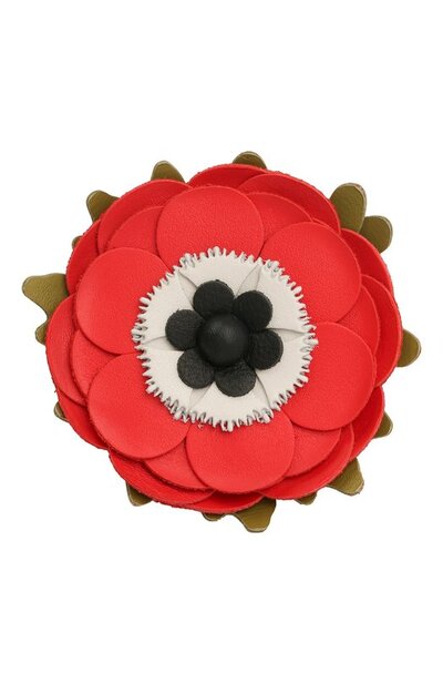 Крупное красное украшение в виде бутона анютиных глазок, изготовленное вручную из мягкой матовой кожи, мгновенно преобразит любимую сумку, не повреждая ее. Легкий аксессуар можно быстро прикрепить к плечевому ремню при помощи позолоченной кобурной кнопки.