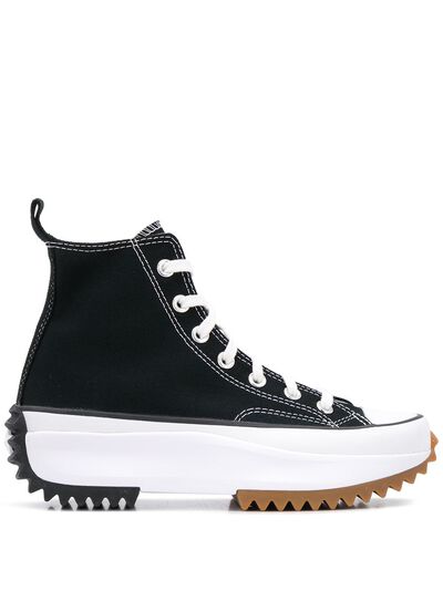 Black Run Star Hike sneakers from Converse featuring a round toe, a lace-up front fastening, a pull tab at the rear, a ridged platform sole and a logo patch to the side.