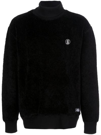 Black cotton polar turtleneck sweatshirt from NEIGHBORHOOD featuring a front logo patch, long sleeves and a straight hem.
