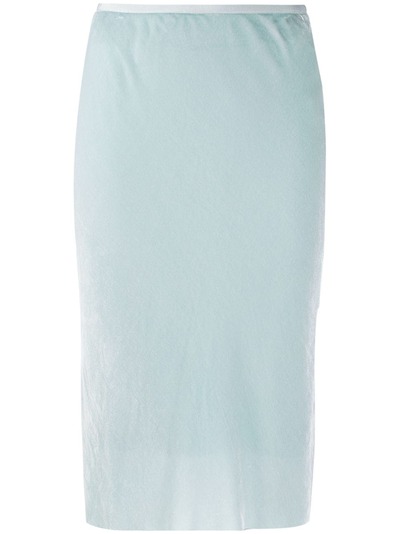 Light blue silk blend textured high-waisted pencil skirt from Helmut Lang featuring a textured style, a high waist, a mid-length and a concealed fastening.
