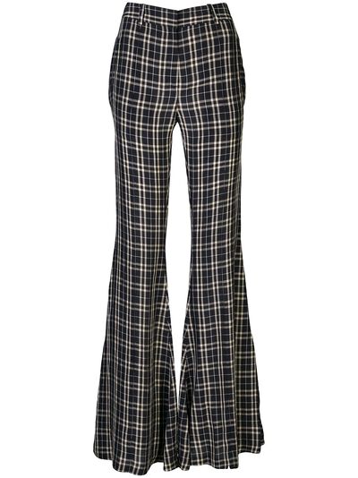 Navy blue Stockard check flared trousers from KHAITE featuring a check pattern, a concealed fastening, a high rise, a slim fit and a flared style.
