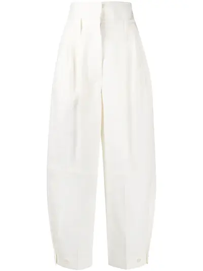 Call us Phileas Fogg 'cause we'll be flying high in these white cotton high-waisted balloon trousers from Givenchy. Featuring a cinched waist, a waistband with belt loops, side slit pockets, stitched panels, button cuffs and inverted lapels, we guarantee they'll be in our style rotation for more than 80 days, too!