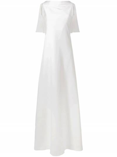 Givenchy's latest collection merges elements of the label's sleek Parisian heritage with contemporary silhouettes inspired by Parisian style. This off white silk sleeveless cape gown from Givenchy features a sleeveless design, a squared neck, a cape at the rear, a fitted waist, a full skirt and a long length.