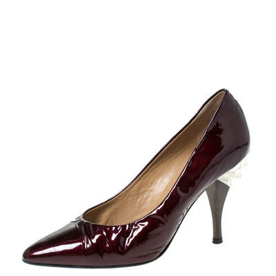 Casadei Burgundy Patent Leather Pointed Toe Embellished Heel Pumps Size 38 296451 (lpn6367405)