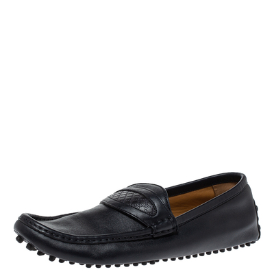There is nothing more comfortable and stylish than a pair of loafers like these Gucci ones. Fashioned in a neat silhouette, this pair has a dark blue leather body and comes with the signature Diamante pattern detailed panel at the vamps. It is finished with a pebbled sole that offers optimal comfort.