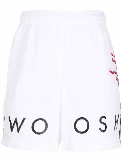 white embroidered logo slogan print side stripe detailing elasticated waistband rear welt pocket