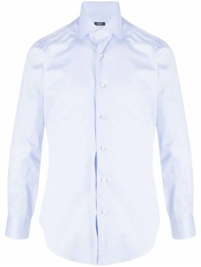 light blue cotton poplin spread collar front button fastening long sleeves curved hem slim fit