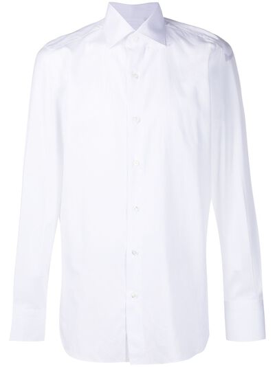 White cotton plain button shirt from Finamore 1925 Napoli featuring a classic collar, a front button fastening, long sleeves and a straight hem.