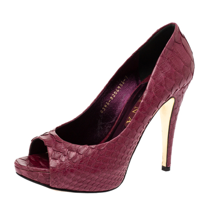 Admired for their exquisite craftsmanship, Gina displays some of the best pumps for all occasions. Crafted from python, these pumps are a splendid example of luxury and class. They feature peep toes and come equipped with comfortable leather lined insoles and 12.5 cm heels supported by platforms. NOTE: (Available for UAE Customers Only)