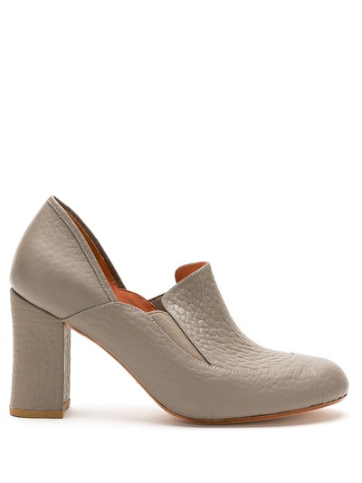Grey leather Egito ankle boots from Sarah Chofakian featuring a round toe, elasticated side panels, a branded insole and a high block heel.