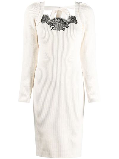 Self-Portrait lace-trimmed ribbed dress 15930103 (lpn7060442)