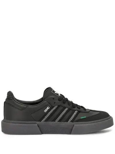 core black signature three-stripe logo logo-print tongue round toe front lace-up fastening flat rubber sole POSITIVELY CONSCIOUS: adidas Group scores 4 out 5 with independent ethical brand rating agency Good On You. It uses eco-friendly materials in many products – 100% of its cotton is from sustainable sources and it's committed to using 100% recycled polyester by 2024. It traces and audits almost all of its supply chain to ensure good labour standards, and has committed to reducing carbon and water stress across its whole supplier base