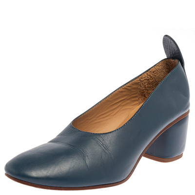 These pumps have been designed to accompany your style with ease The shoes are a result of blending the comfort factor with minimal design elements. Crafted using blue hued leather, the block heeled pumps featuring round toes, extended counters, and leather and rubber soles are from Joseph.