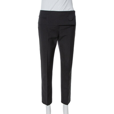 Wear these well tailored pants with a bodysuit and oversized blazer a combination that wont let you down at the office or an event. From the house of Balenciaga, this black pair is cut to a smart fit with a broad flap button closure at the waistline. Wear yours with high heeled pumps for a knockout look.