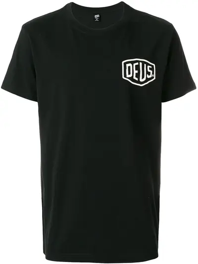 Black cotton oversized logo T-shirt from Deus Ex Machina featuring a round neck, short sleeves, an oversized fit and a chest and back logo print.