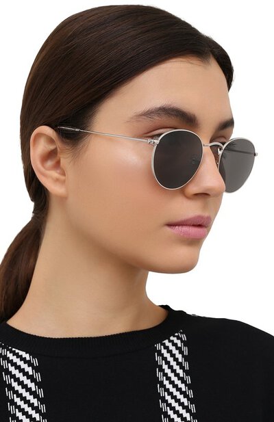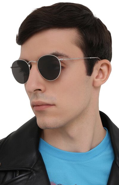 Выполненные в ретро-стиле солнцезащитные очки, вдохновлены контркультурой 1960-х. Аксессуар изготовили из легкого, но при этом прочного титана с серебристым покрытием. Темно-серые хрустальные линзы поглощают 85% видимого света и блокируют большую часть синего, не искажая цвет, но делая предметы более четкими, а оттенки — контрастными.
