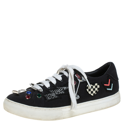 Marc Jacobs Black Canvas Patches And Embellished Low Top Sneakers Size 39 386089 - 1