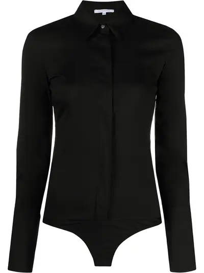 black cotton classic collar front button fastening long sleeves classic bottoms