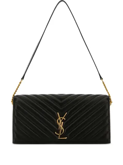 black lambskin adjustable detachable shoulder strap chain-link shoulder strap gold-tone logo plaque foldover top with magnetic fastening internal zip pocket internal logo patch