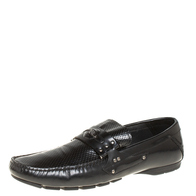 Precise stitching, use of quality leather, and a comfortable shape result in this pair of loafers. They are by Versace, and this is evidently displayed with the Medusa motif detailing on the uppers. The black loafers are finished with silver tone hardware and are wrapped in comfort and style.
