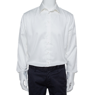 Perfect to add to your formal collection, this white hued Armani Collezioni shirt comes tailored from cotton and styled with a collar, front buttons, and long sleeves. It is sure to bring you comfortable fashion.