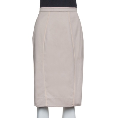Beige is a wonderful color that can be styled with ease and when worn as a fitting skirt can project a refined look. This Valentino creation is a simple knee length skirt with a ruffle panel. The back zip fastener secures the skirt well.