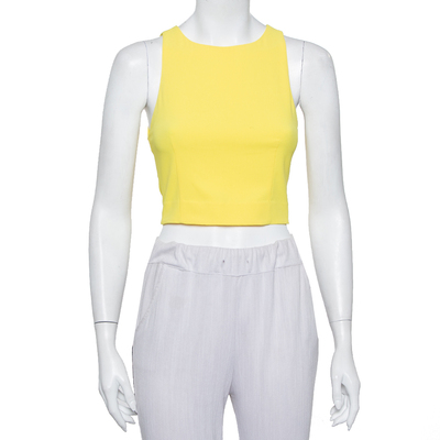 Go for stylish comfort with this top from Alice + Olivia that offers a trend apt for all seasons. This elegant yellow sleeveless top can be easily teamed with skirts, pants, or shorts. It has a round neckline and a lace trim at the back featuring a zipper.